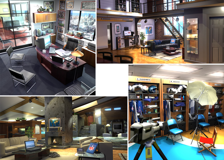 These were created under contract for Maya-rendered scenes used in Madden NFL '06's "persona" campaign feature.